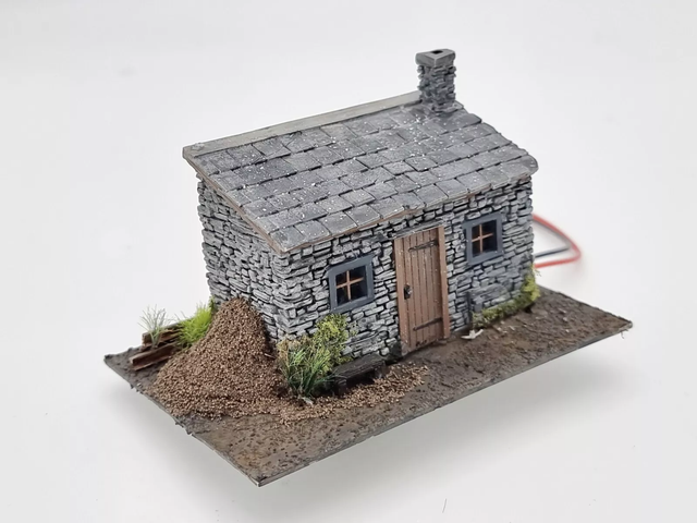 This meticulously hand-crafted lineside hut mini-scene features a painted and weathered stone hut overflowing with character, nestled amidst realistic details and comes pre-fitted with flickering candle effect internal lighting LED.