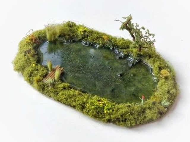 Hand-crafted easy-to-fit OO gauge pond for woodlands, fields, gardens or the corner of a layout.